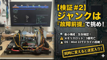 ジャンクPC検証第2回。フル構成で「画面が映らない」トラブルに直面。最小構成からの切り分けで特定した意外な故障箇所とは?GTX 680とLinux Mint 22のドライバ相性問題など、ジャンクいじりの定石と解決までの思考プロセスを綴ります。
