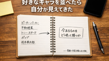 思考整理なんで毎回このタイプのキャラを好きになるのか、少し考えてみた 歴代で好きだったキャラクターを並べてみたら、自分の価値観や思考のクセが見えてきました。なぜ毎回同じタイプのキャラに惹かれるのかを、自己分析しながら少し掘り下げてみた記事です。 2026.04.11思考整理